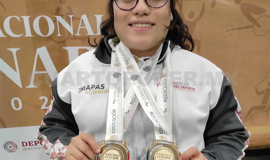 En el marco de los Paranacionales Conade 2024, Fabiola del Carmen Pérez Zenteno, una de las grandes representantes del deporte adaptado de Chiapas, logró subirse al primer escalón del podio en dos ocasiones, llevándose dos medallas de oro en la disciplina de parapowerlifting. El evento, que se lleva a cabo en el estado de Oaxaca, tuvo como escenario el prestigioso Complejo Deportivo Hermanos Flores Magón, donde la joven deportista demostró una vez más su gran capacidad y talento al dominar la competencia en la división de los 55 kilogramos.