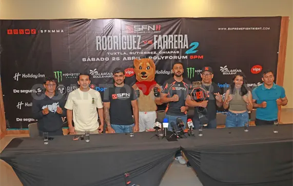 Artemio Montesinos, promotor de Supreme Fight Night, se congratuló de poder presentar el esperado pleito entre dos gladiadores que tienen su historia particular, como pocas veces se ha visto en las Artes Marciales Mixtas de México. Y más aún al poder realizar el combate en Chiapas, donde dejaron huella hace poco más de dos años, antes de llevar la liga a expandir su territorio hasta Guadalajara.
