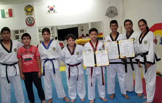 En una ceremonia muy emotiva y de gran significado para la institución y alumnado, el doyang Moo Duk Kwan Moctezuma hizo entrega de certificados de cintas negras a los alumnos Aldo Fabricio Sánchez Aguilar, 2° Poom, y Víctor Manuel Lascarez Gallardo, 1° Dan.