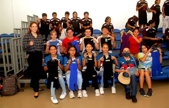 Seleccionados de Tiro Deportivo, Golf y Ciclismo recibieron, de manos de la directora del Instituto del Deporte, Tania Robles Velázquez, los kits deportivos y uniformes que portarán en los Nacionales Conade 2023. Así también, a la delegación de Atletismo le fue entregado el uniforme antes de su participación en el Macro Regional, del cual Chiapas es sede del 23 al 28 de mayo.