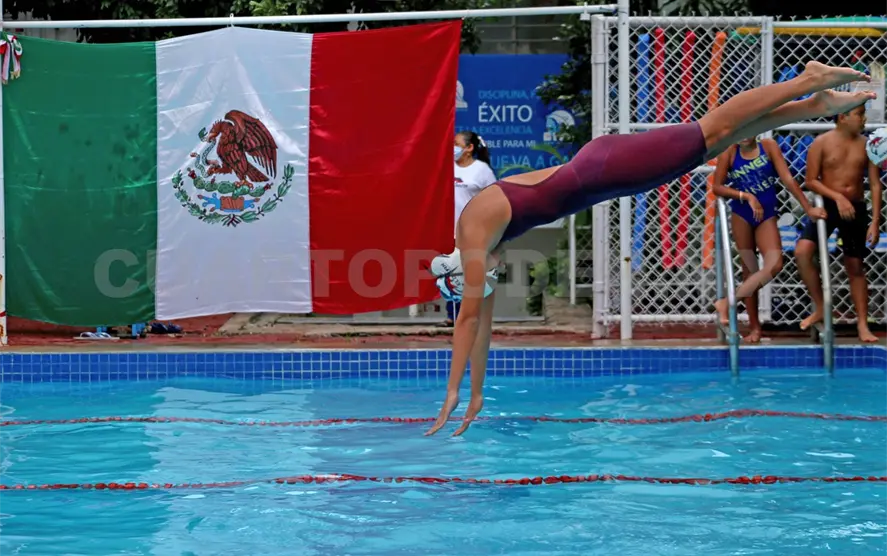 Previo a las acciones en la alberca, la directiva del club, encabezada por la entrenadora Amanda Moguel Rodríguez, fue testigo del tradicional desfile de participantes, en el que los nadadores tuvieron que lucir motivos tradicionales, desde trajes típicos, rostros tricolores, banderas, matracas, sombreros y un sinnúmero de motivos tricolores para demostrar su fervor por México.