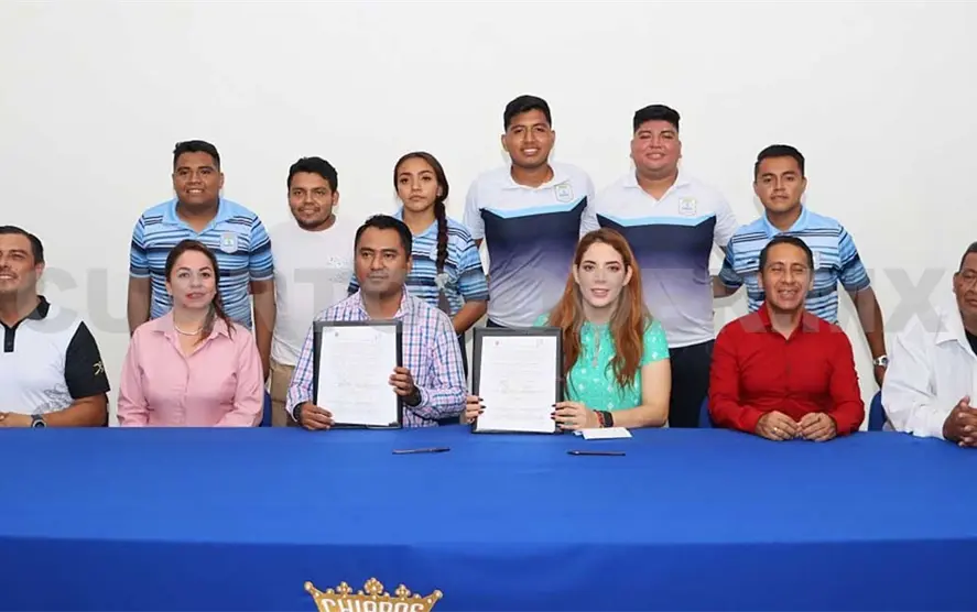 La directora del Instituto del Deporte (Indeporte), Tania Robles, y el director de la Escuela Normal de Licenciatura en Educación Física Tapachula (Enlef), Daniel Alejandro Escobedo García, plasmaron su rúbrica en un convenio interinstitucional académico y deportivo, con el objetivo de estrechar lazos de colaboración para brindar bienestar y desarrollo integral a las y los jóvenes normalistas.