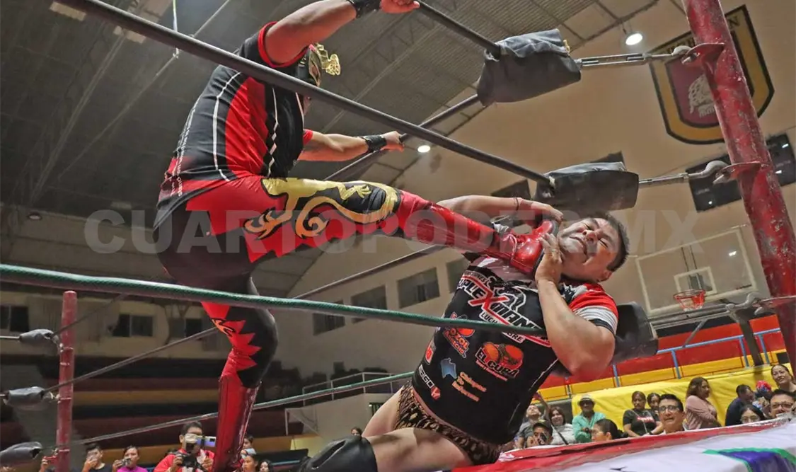 La dinastía de los malhechores continuó dominante, pero “Lazarito” y New Fire Jr. reaccionaron. El heredero de los Fire llevó a Turipache 2000 a las gradas del auditorio. Fuego Nuevo buscó las espaldas planas, pero “El Chilango” detuvo el conteo al ver que el “Chido 4000” se apoyaba de las cuerdas.
