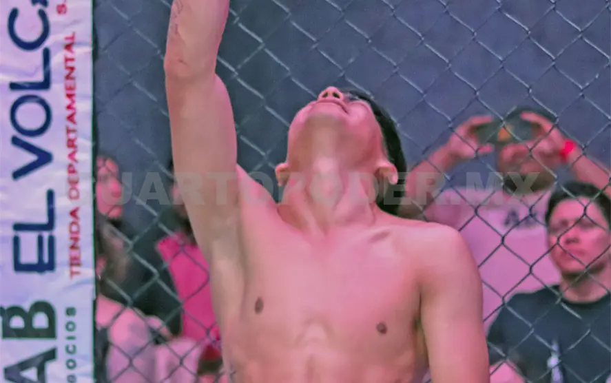 Luego, Adalberto “Lil B” Cortez Montaño sometió a Gabriel Ayala Cleofas en el primer asalto de las 170 libras con golpes desde la montada, en otra batalla que encendió al público ante la garra y decisión del peleador de Berriozábal.