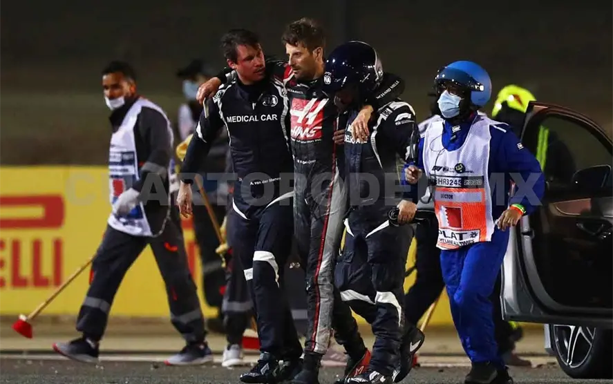 Gracias al halo de seguridad, a la célula de supervivencia y al traje que soporta una temperatura de entre 600 y 800 grados, el piloto pudo salir del accidente con algunas quemaduras en las manos y los tobillos, además de un fuerte golpe en la costilla.