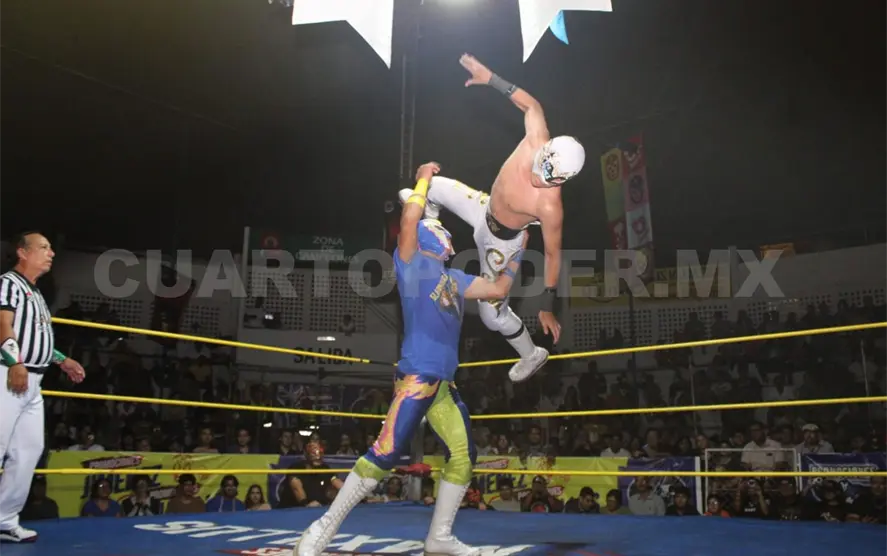 La función también presentó combates de tercias llenos de dinamismo. Kisha Catt, Lluvia de Estrellas y Cometa lograron una contundente victoria sobre Águila Dorada, Tharbos y Rebelde Boy, en un duelo donde la estrategia y la coordinación fueron claves para llevarse el triunfo.