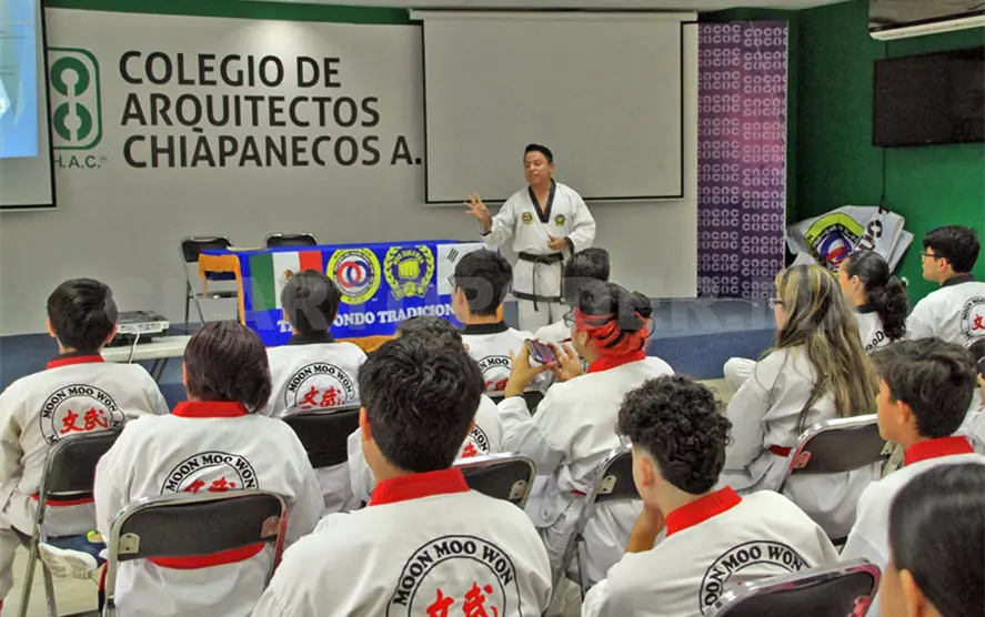 Con la participación de más de medio centenar de taekwondoínes de los grados cintas negras y rojas, provenientes de diferentes municipios del estado de Chiapas, Moo Duk Kwan impartió el Seminario de Arbitraje, como parte de los programas de capacitación y actualización que se realizan en todo el país en esta disciplina.