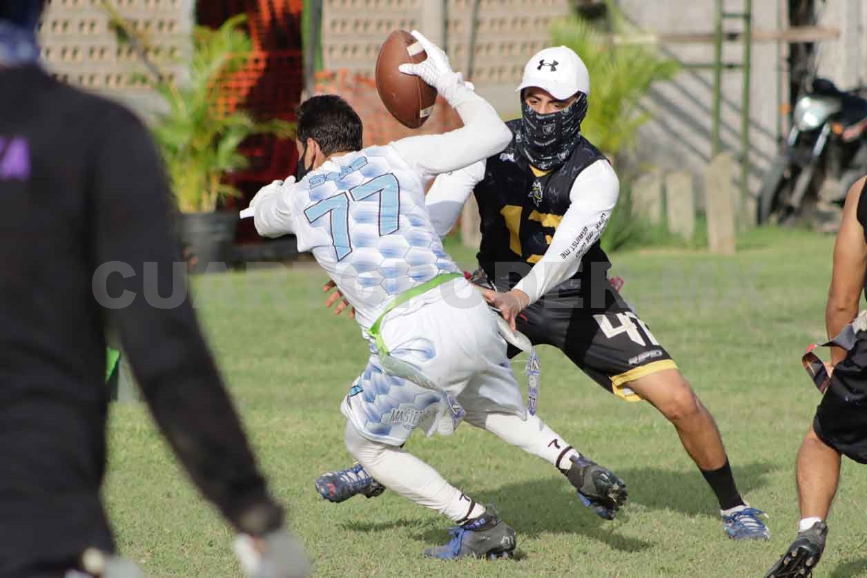 En los otros cruces, Tecolotes de Juchitán, Oaxaca pasó 21-0 sobre Alligators de Cintalapa, y Tigres derrotó 38-33 a los Iron Dogs. Ya en la ronda de semifinales, Kings venció con autoridad a Tigres, por 41 a 24, en tanto que Destila2 tuvo que emplearse al máximo para avanzar al partido de campeonato a costa de Tecolotes, por 53-42.