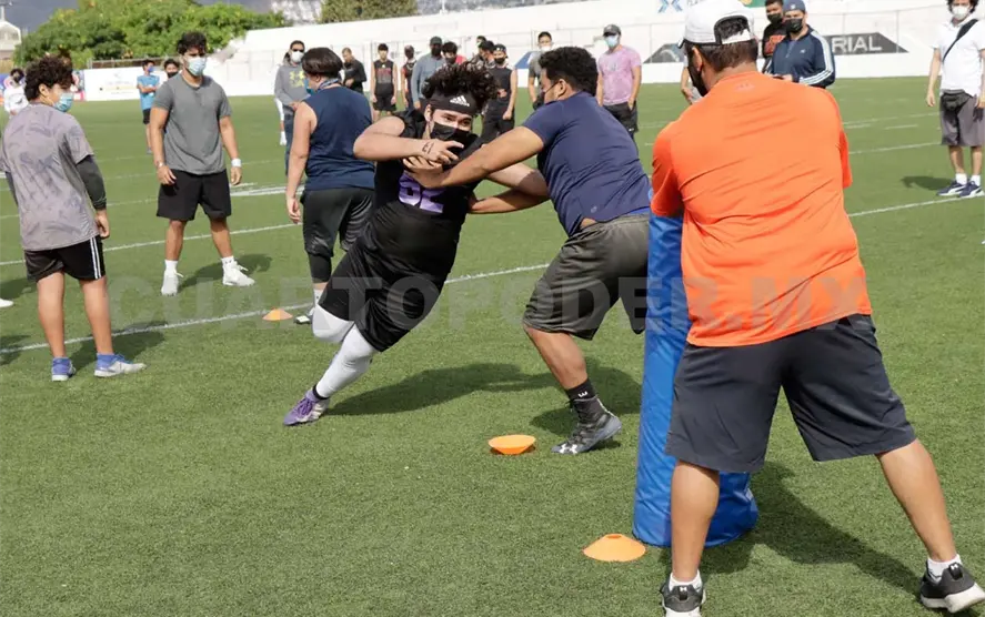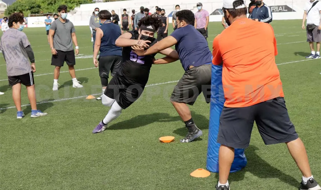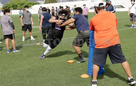 Los trabajos efectuados fueron sin equipamiento —casco, “shoulders”, peto, etcétera—, a fin de ver la habilidad real de cada individuo, “y no tanto el golpe, que es una de las cosas que el Futbol Americano trata de evitar; si hay contacto, que se cuide, y entonces al hacerlo sin equipo nos permite ver cómo se mueve, qué tan veloz es, qué habilidades tiene con las manos y los pies”, explicó.