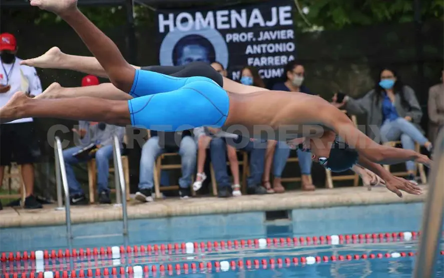 En el marco del festejo acuático se llevó a cabo un homenaje póstumo a Javier Farrera Nuricumbo, con la presencia de la esposa del entrenador, Adriana Mendoza, en compañía de sus hijos, quienes recibieron de manos del alcalde Jorge Arturo Acero Gómez una placa alusiva.