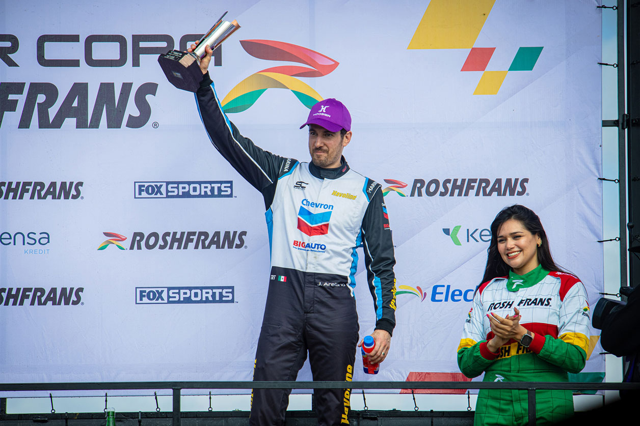 El momento llegó ante un caluroso clima que incluso tuvo un poco de lluvia. La primera bandera verde se dio a temprana hora, en una carrera realmente complicada para el del Chevron Racing, que ya se encontraba en puestos de podio cuando un contacto lo relegó. Sin embargo, volvió para pelear y tomar el tercer sitio en los últimos momentos de la competencia, firmando el podio a su favor.
