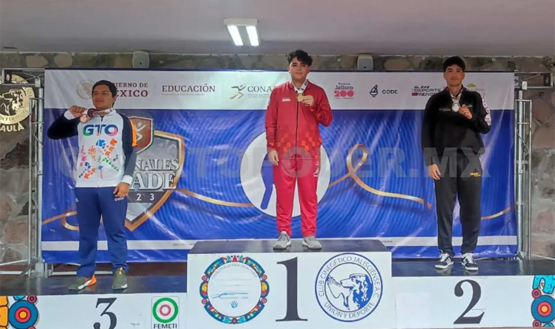 De acuerdo con el programa de competencias del comité organizador, para las pruebas de este martes 23 de mayo por la mañana, en las instalaciones del Polideportivo Paradero, en los 10 metros pistola aire, el representante chiapaneco de la categoría 18-23 años se adjudicó el oro, contabilizando un total de 245.6 puntos. La plata correspondió al jalisciense Ricardo Valencia con 238.5 unidades, y el bronce a David Valdez del estado de Sonora, con 238.2.
