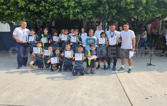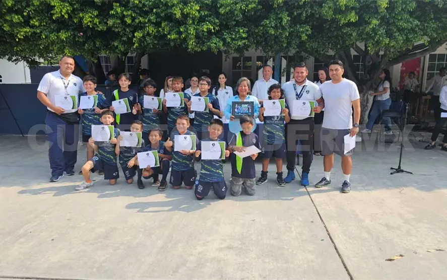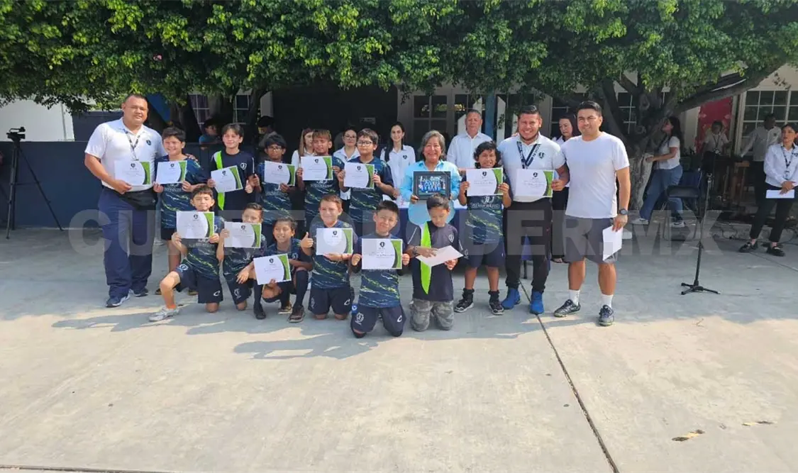 En un emotivo acto, la directiva de la José Vasconcelos School reconoció a los estudiantes que integraron el equipo que participó en el Futbolito Bimbo 60 Años, así como a la coordinadora estatal del torneo, la profesora Ericka López Guzmán.