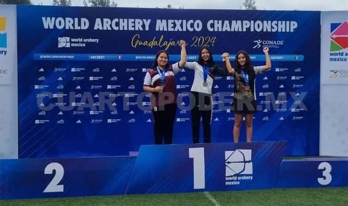 La atleta chiapaneca especialista en el Tiro Con Arco Karime Montoya Alfaro se afianzó con la medalla de oro en la categoría sub-18 femenil arco recurvo en el Campeonato Nacional 2024 de la World Archery México, que se llevó a cabo en la ciudad de Guadalajara, Jalisco.