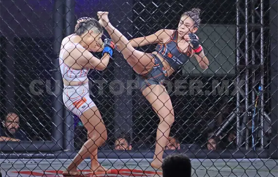 Damara, originaria de Ensenada, Baja California, y representante del Entram Gym, inició el enfrentamiento con mejores combinaciones y tratando de imponer su mayor estatura para poner en predicamentos a “La Duraznito”, quien vino de León, Guanajuato, con la premisa de defender los colores de la Academia Yudansha, que dirige su padre Carlos “Sensei” Torres.
