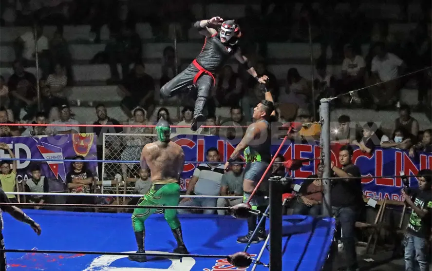 Hijo de Octagón y Gladiador Jr. se impusieron ante Templario y Murcy Jr., en la Lucha Libre estelar de la cartelera Legado del Dragón, presentada por Promociones Jiménez y Promociones Maxillus en el histórico Centro Deportivo Roma de Tuxtla Gutiérrez.