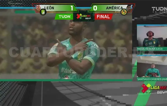 Con una precisión del 100%, León capitalizó su primer jugada y anotó el primer gol del certamen con un disparo del jugador virtual Nicolás Sosa; a pesar de los esfuerzos por parte del juvenil Cáseres, el club América no pudo reaccionar y tras el gol, fue el conjunto de León el que controló las acciones.