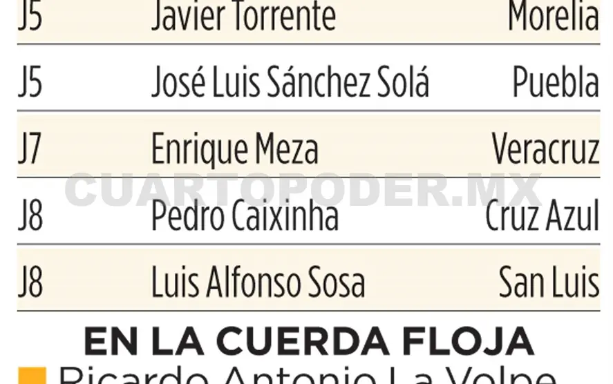 A ocho fechas de haber arrancado el torneo de Apertura 2019 del Futbol mexicano, ya son cinco los técnicos que fueron separados de su cargo, y otros están en la tablita ante los malos resultados que los tienen en los últimos lugares de la tabla general.
