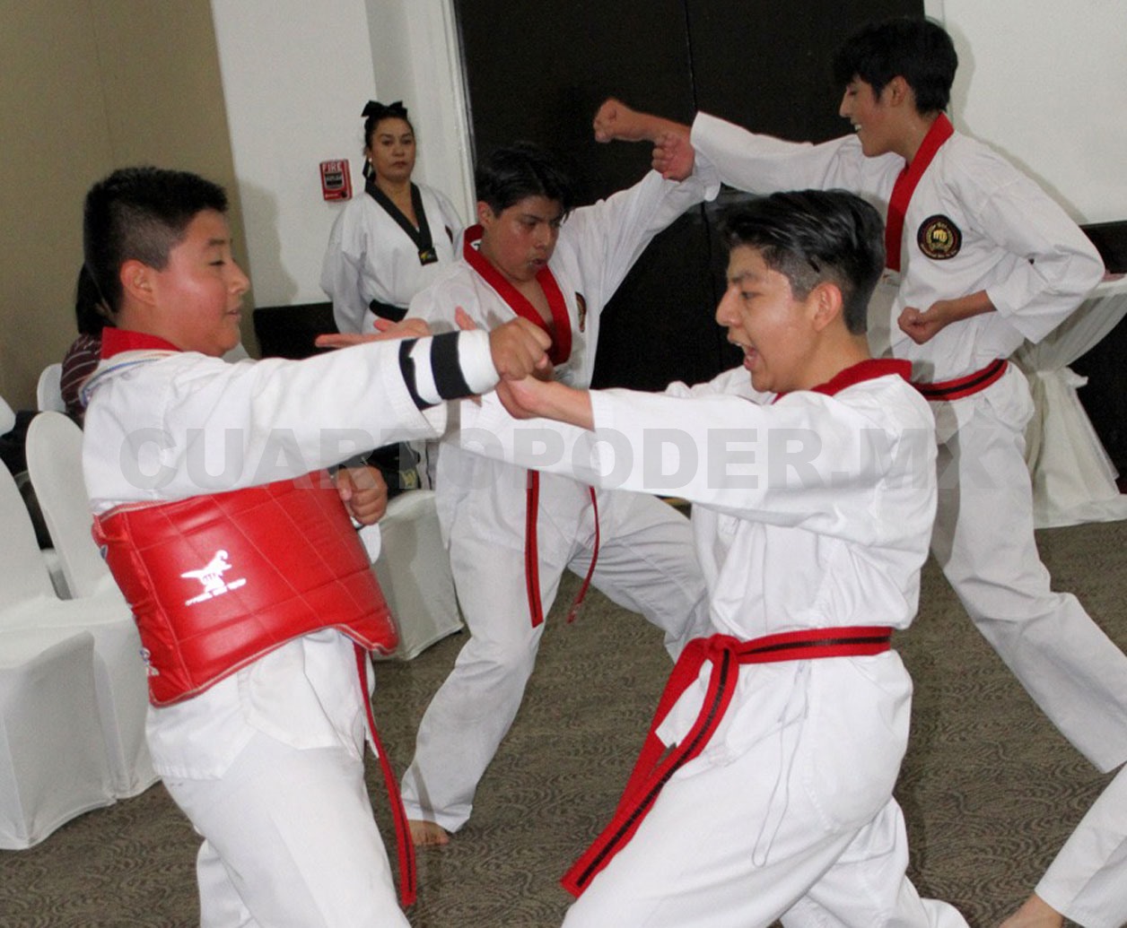 La evaluación tuvo lugar en las instalaciones del Hotel Fiesta Inn, donde el ambiente marcial y la solemnidad tradicional del arte coreano dieron marco a una jornada intensa. La sesión estuvo encabezada por Yuri César Lópezgallo, presidente fundador de IMDW, acompañado de los sinodales Iván Lópezgallo, vicepresidente; Víctor López; Rafael Rodríguez; Héctor Bedolla Bermúdez, director general de Zona Chiapas, y José Ruperto Lázaro Méndez, director técnico de IMDW Tuxtla Gutiérrez.