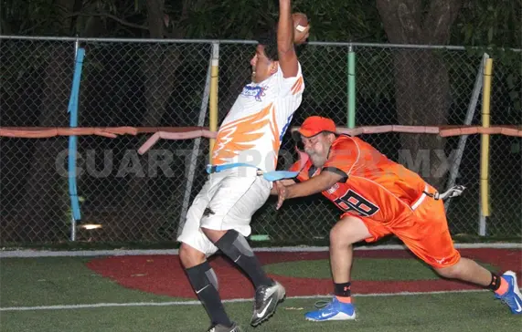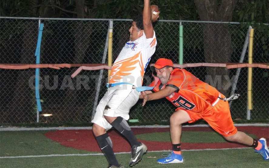 Este martes por la noche en la cancha de Flag Football del parque deportivo Caña Hueca se jugaron los duelos de semifinales de la categoría master 40 de la Liga Municipal de Tocho Bandera (LMTB), donde la escuadra de Halcones se encargó de eliminar a su similar de Toros para estar en la gran final de la misma.