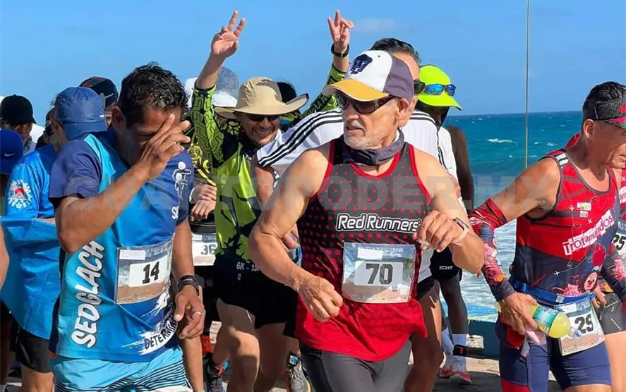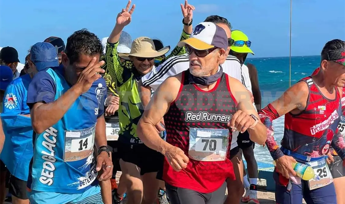 Óscar de los Santos Domínguez conquistó el segundo puesto en la categoría general rama varonil de la sexta edición del Ultramaratón Non Stop 2024, que se llevó a cabo el fin de semana en Isla Mujeres, Quintana Roo. El atleta conocido como “4 Pilas 100K” alcanzó una marca de 202 kilómetros en el circuito del Malecón Oriente. Por su parte, Juan Diego Robles se quedó con el segundo lugar en la clasificación de 35-39 años varonil.