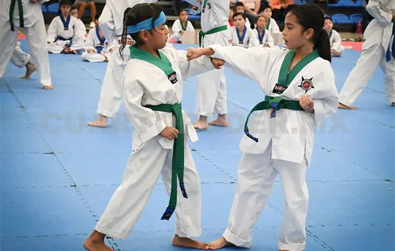 Los participantes, provenientes de los gimnasios Casta de Campeones, Melvin, Tigres Blancos de Acala, Raptores de Chiapa de Corzo, Búfalos Team, Kukulcán de Berriozábal y Panamericano CUB, se evaluaron en bloques según su nivel, desde cintas blancas hasta marrones, demostrando su preparación en formas, pateo básico, defensa personal, combate y rompimiento de tablas.