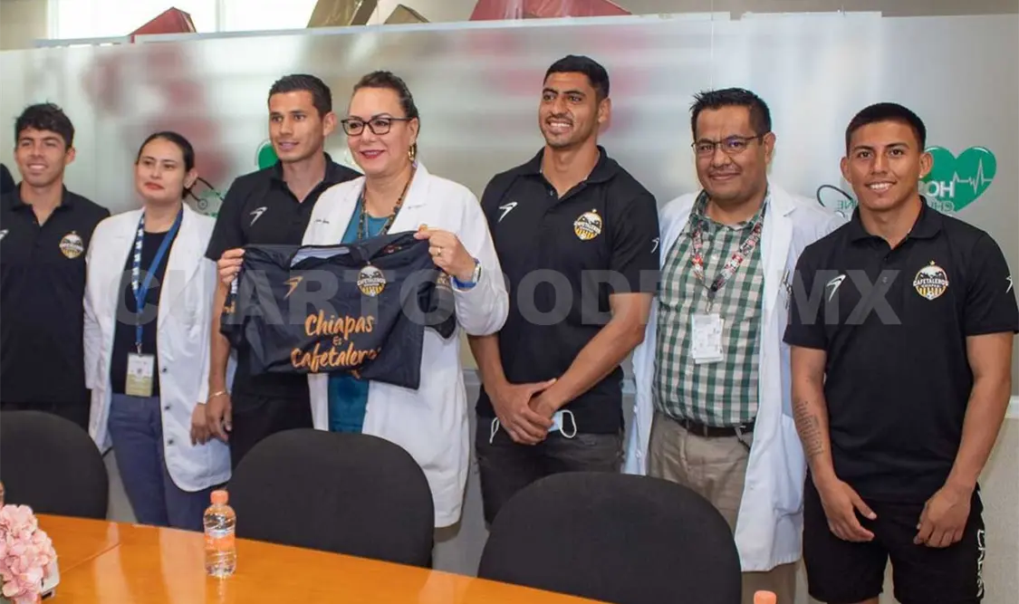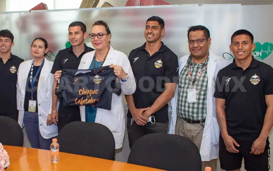 Los futbolistas Josué Lázaro, Osvaldo Valerio, Víctor Reyes, Emiliano García y Alexis Andrade dejaron el balón por unas horas para compartir un momento de alegría y esperanza con pacientes del Hospital General Dr. Jesús Gilberto Gómez Maza, en Tuxtla Gutiérrez.