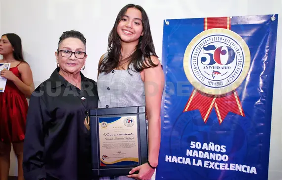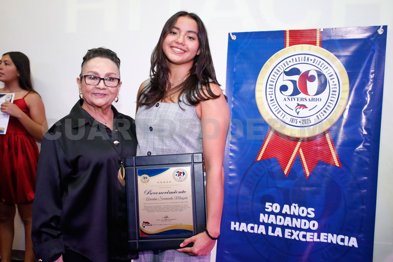 Acto seguido, empezó la entrega de reconocimientos y en el escenario estuvo precisamente la profesora Moguel Rodríguez, en compañía de sus hijas Rocío, Mónica y Lily Anzueto Moguel, como parte de la directiva, además de Rubén Guzmán Zuarth, expresidente de la Asociación de Natación del Estado de Chiapas, y Adolfo de Jesús Solís Muñiz, nadador master.