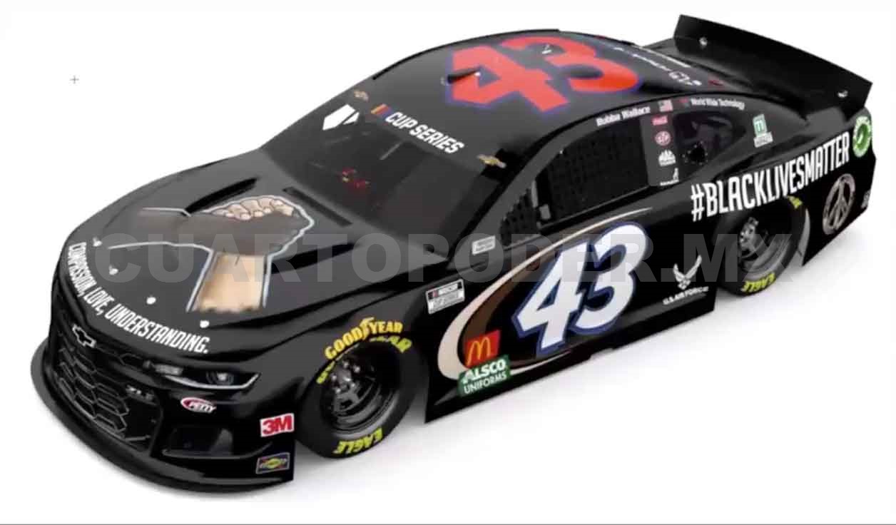 El piloto afroamericano Bubba Wallace y Richard Petty Motorsports revelaron la nueva pintura #BlackLivesMatter para el Chevrolet que conduce en Nascar. Además de la frase “#BlackLivesMatter” (Las vidas negras importan), en el cofre del vehículo se pintó un puño negro entrelazado con un puño blanco.