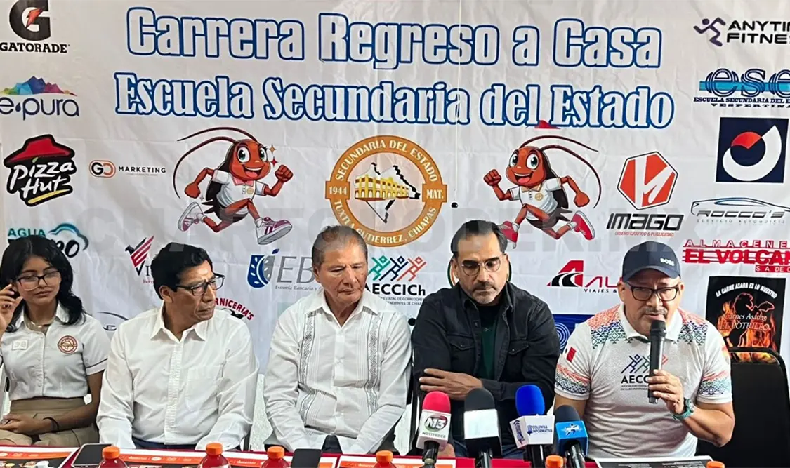 La Escuela Secundaria del Estado (ESE), en su turno matutino, presentó de manera oficial la octava edición de la carrera Regreso a Casa, evento que se llevará a cabo el próximo domingo 31 de mayo, a partir de las 7 de la mañana, en Tuxtla Gutiérrez.