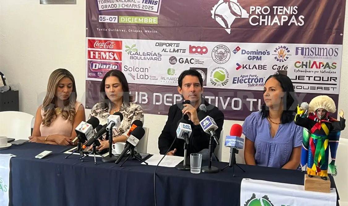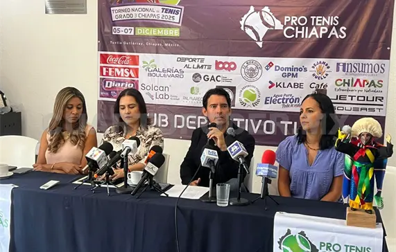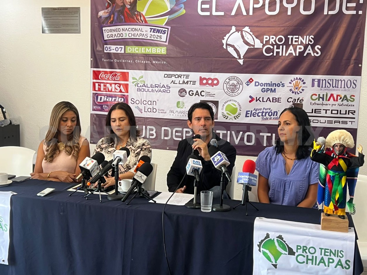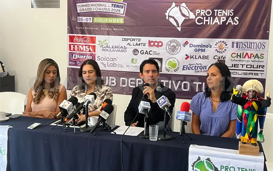 La Asociación Pro Tenis Chiapas oficializó la llegada del Torneo Nacional de Tenis Grado 3 Chiapas 2025, evento que volverá a colocar a la capital del estado en el panorama competitivo del deporte blanco. La presentación se hizo en conferencia de prensa encabezada por Lucía Penagos, Paola Alonso, Regina Medina y Alfredo Penagos, integrantes del comité organizador, quienes detallaron la estructura y los alcances que tendrá esta edición.