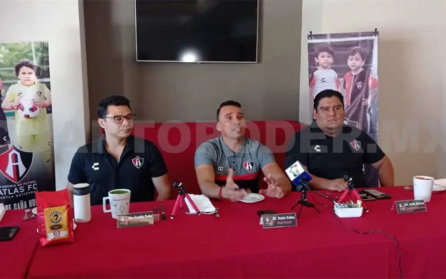 En conferencia de prensa fue presentada oficialmente la Academia Atlas Filial Tuxtla, que abrirá sus puertas para todos los chiapanecos a partir del próximo 23 de enero. Jesús Álvarez, director deportivo; Freddy Peña, gerente de “marketing”, y Stanlin Valdez, director de entrenadores estuvieron en el evento.