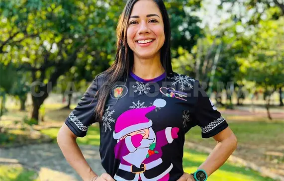 El “jersey” conmemorativo presenta un fondo color negro para resaltar todos los elementos que lo integran: en el frente el escudo oficial del H. Congreso del Estado y el emblema del Voluntariado Legislando con el Corazón, así como una divertida imagen de Santa Claus luciendo el calzado deportivo propio de los “runners” y en una pose ganadora, rodeado por copos de nieve que se asocian con esta época navideña.