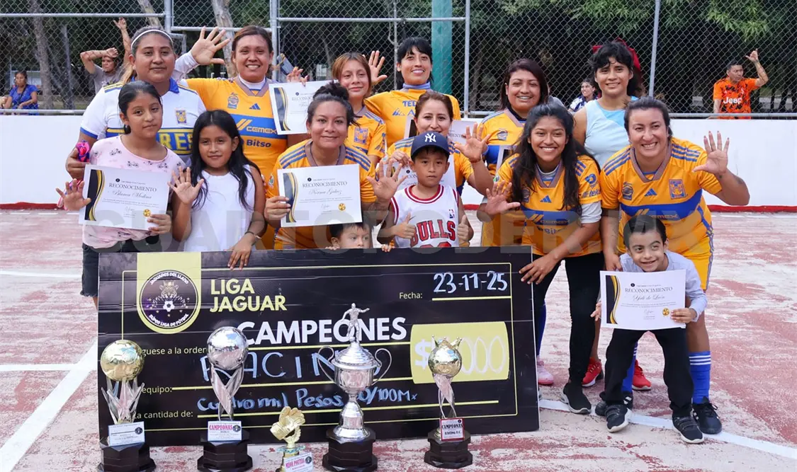 La cancha de Futbol Rápido de Caña Hueca fue el escenario de una final vibrante que dejó a Racing como campeón absoluto de la Liga Jaguar Femenil, tras imponerse por 4-2 ante Kaizen en un partido lleno de intensidad, oficio y momentos de brillantez individual. Con este triunfo, Racing alcanzó su quinta estrella y se convirtió oficialmente en el conjunto más ganador en la historia del certamen.