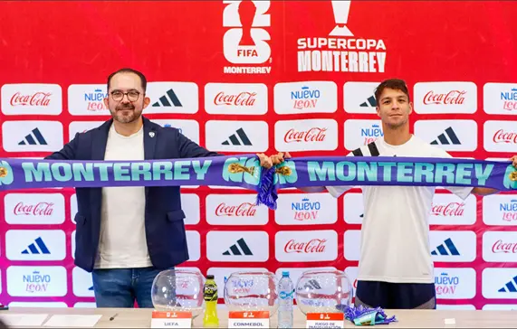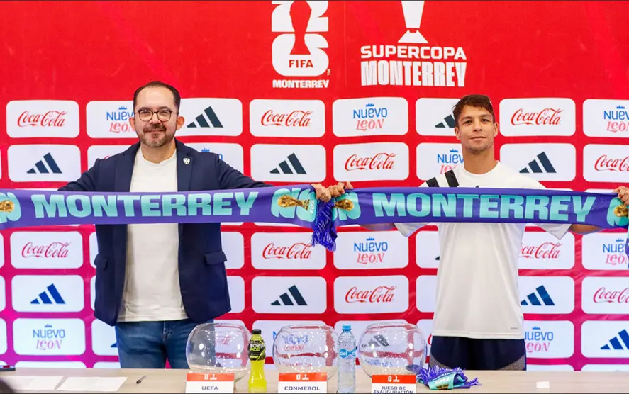El flamante refuerzo de la Pandilla Óliver Torres, Everardo Valdez, director de Relaciones Institucionales y Medios del Club de Futbol Monterrey; y Alejandro Hutt, Host City Manager de Monterrey 2026, presentaron el torneo este miércoles y realizaron el sorteo del mismo.