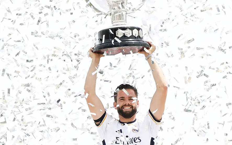 Los jugadores del Real Madrid y el cuerpo técnico encabezado por Carlo Ancelotti celebraron a última hora de la mañana con su afición en la fuente de Cibeles la conquista de La Liga EA Sports. Antes iniciaron un recorrido por Madrid, tras visitar las sedes de la Comunidad de Madrid, en donde los esperaba un autobús descapotable que les trasladaría al ayuntamiento.
