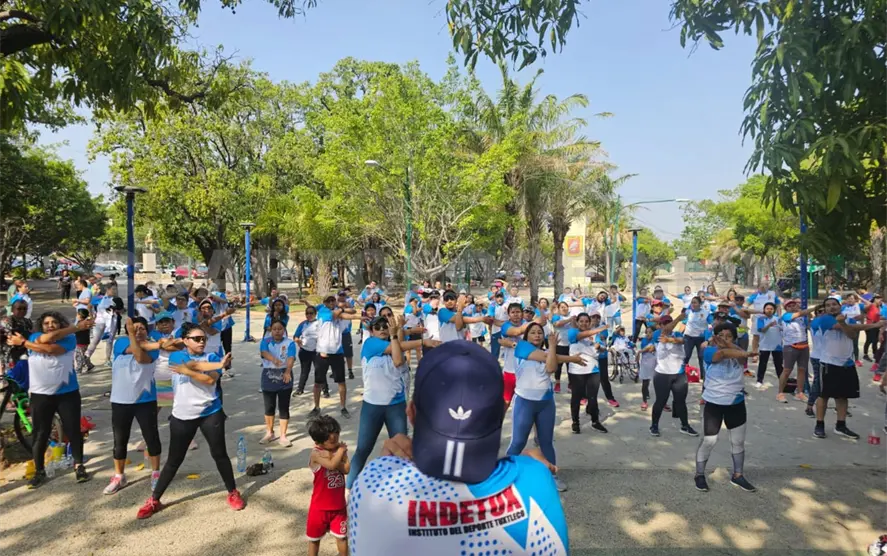 Más de 100 tuxtlecos se dieron cita en el parque Caña Hueca para sumarse a esta actividad realizada por el Instituto del Deporte Tuxtleco (Indetux), que estuvo a cargo del profesor Iván Martínez, quien motivó a todos los presentes para realizar los ejercicios.