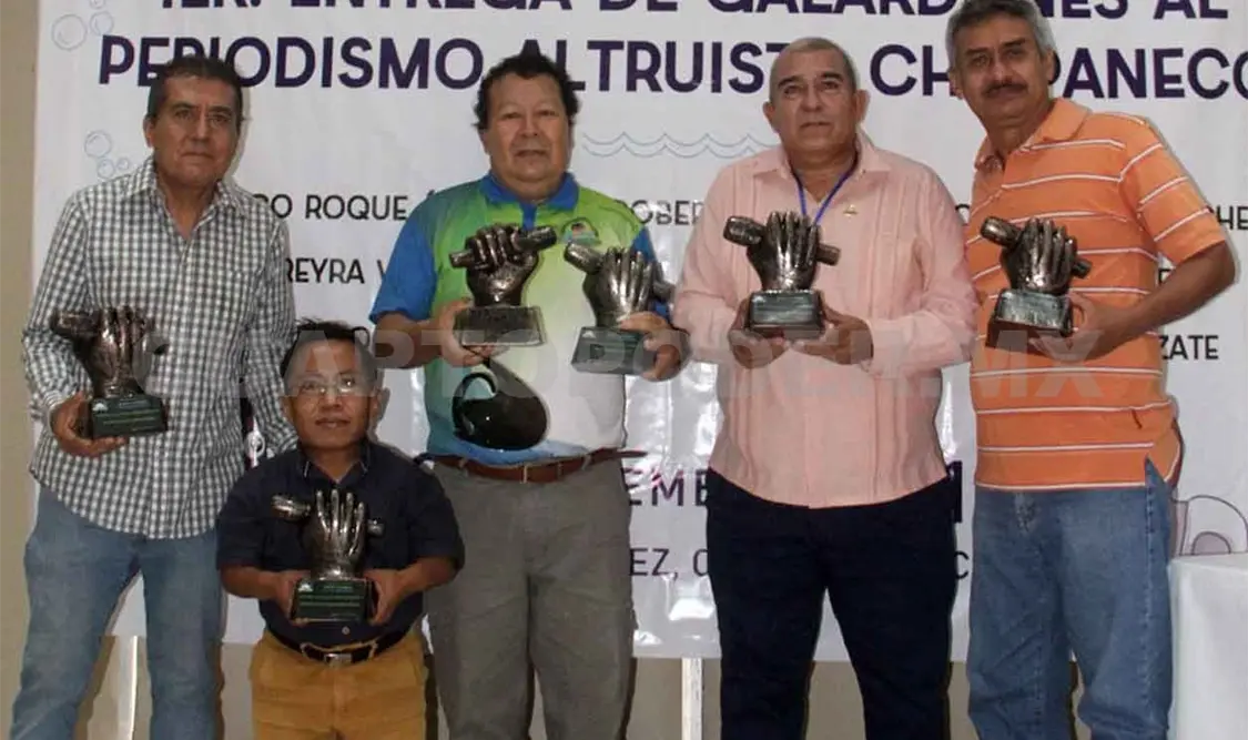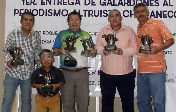 En total fueron seis profesionales de la pluma quienes recibieron el trofeo; entre ellos, Ismael Quintero Arzate, Víctor Manuel García Gómez, Francisco Roque Álvarez, Addiel Pereira Vázquez y Enrique Ríos, así como el comandante de la subzona del Pentathlón Universitario Deportivo Militarizado de Chiapa de Corzo, Roberto Cañaveral Sánchez.
