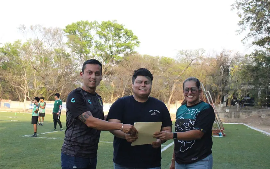 A la firma efectuada durante uno de los entrenamientos del actual campeón de la Liga Tuchtlán asistieron Sergio Nicolás Jiménez, director de la academia filial en Tuxtla; Paulina Gutiérrez Molina, coordinadora del club, y Luis Alejandro Villalobos Aguilar, representante de la Clínica Recrea.