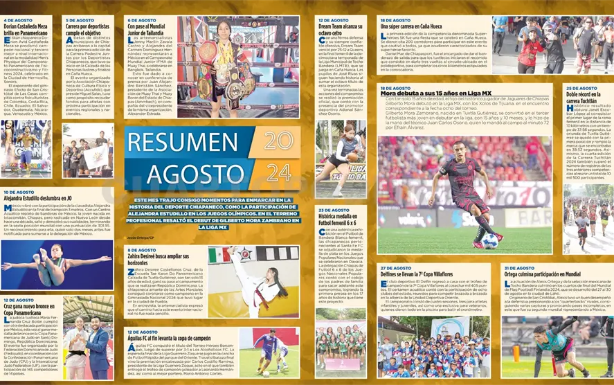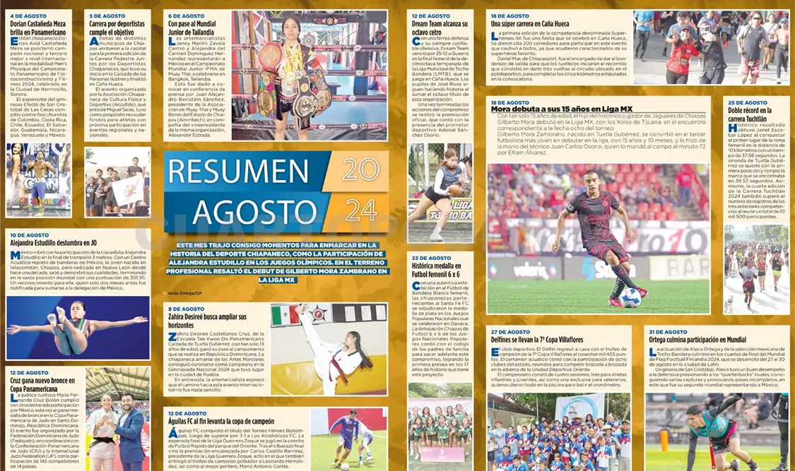 Este mes trajo consigo momentos para enmarcar en la historia del deporte chiapaneco, como la participación de alejandra estudillo en los juegos olímpicos. En el terreno profesional resaltó el debut de Gilberto Mora Zambrano en