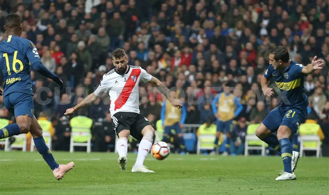 Al término de los 90 minutos, el global decía River Plate 3-3 Boca Juniors, por lo que el máximo certamen a nivel de clubes en Sudamérica se tuvo que ir a tiempos extra. Ya en el alargado, los millonarios se pusieron en ventaja con un gol de bandera del colombiano Luis Fernando Quintero, quien recepcionó fuera del área del Boca y sacó un riflazo que sacudió las redes del arquero Esteban Andrada, al minuto 109.