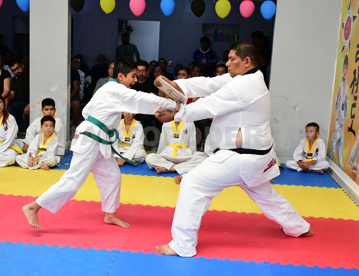 Durante esta jornada, los atletas, desde cintas blancas hasta marrones, tuvieron distintas pruebas acordes con su nivel, incluyendo circuitos de motricidad, pasos de combate, ejecución de formas, defensa personal, rompimiento de tablas y combates controlados, evidenciando su preparación integral.