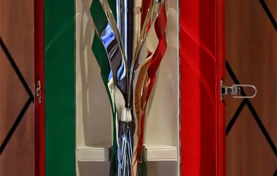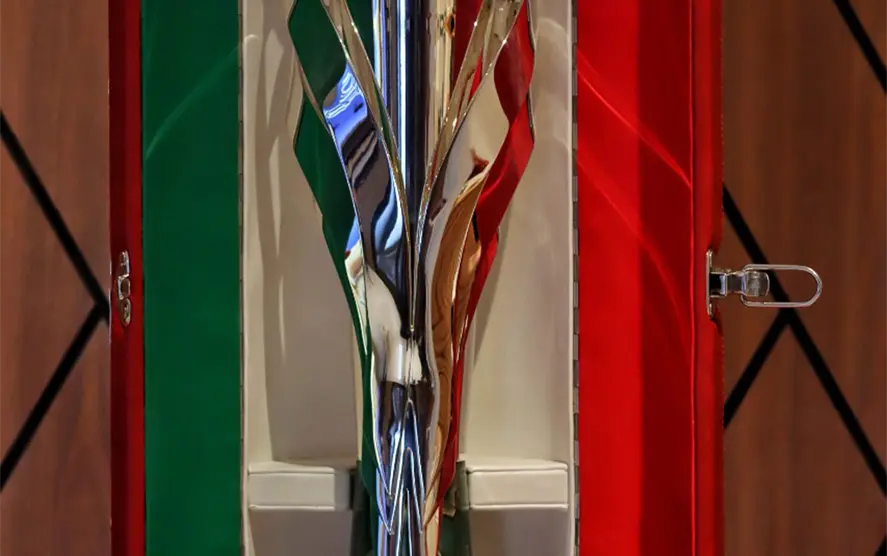 La figura es una pieza simétrica “llena de libertad y movimiento, que muestra líneas que simulan las alas del águila real, protagonista del escudo nacional y que evoca su velocidad y poderío”, señaló la organización del GP de México.