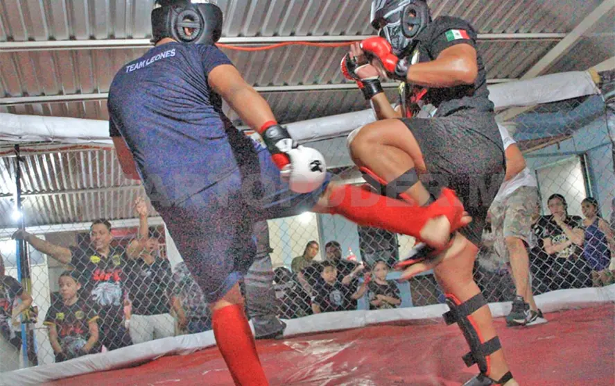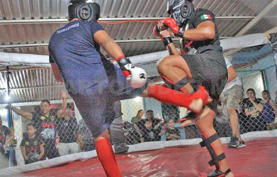 La academia Última Dinastía de Guerreros 2 reabrió sus puertas y para celebrar este acontecimiento, además del tradicional corte de listón, organizó una concurrida exhibición de combate de Artes Marciales Mixtas (MMA) para varones, así como peleas de Box para damas.