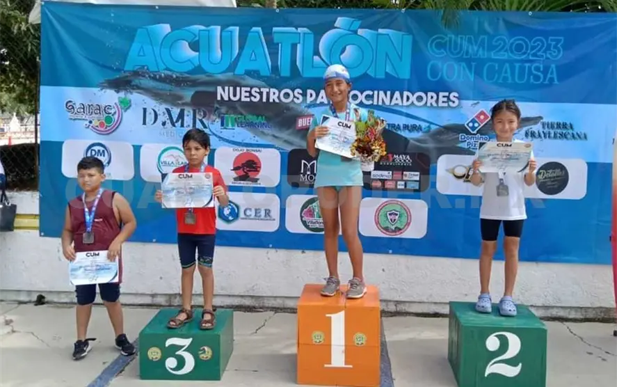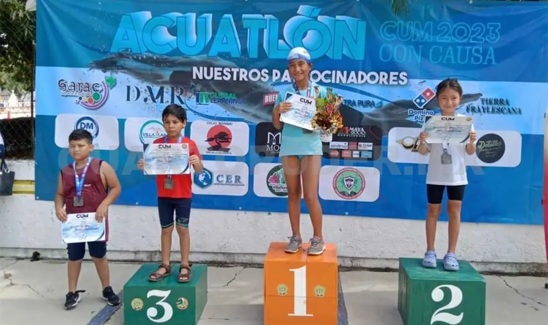 Victoria Jiménez se quedó con el primer puesto en el Acuatlón CUM 2023 “Con Causa”, que se realizó este fin de semana en las instalaciones de la Unidad Deportiva de Villaflores. La tuxtleca perteneciente a la Escuela Municipal de Natación Parque del Oriente sorprendió a propios y extraños en la prueba de 25 metros en natación, así como en 360 metros planos de atletismo.