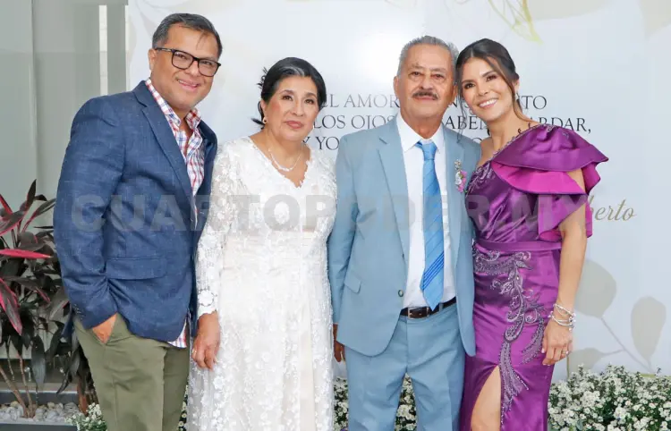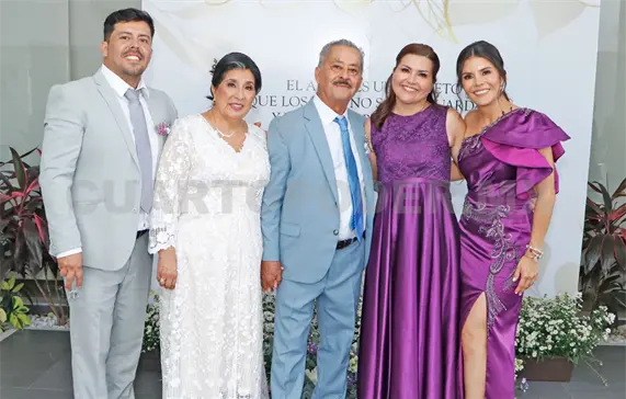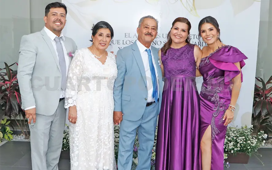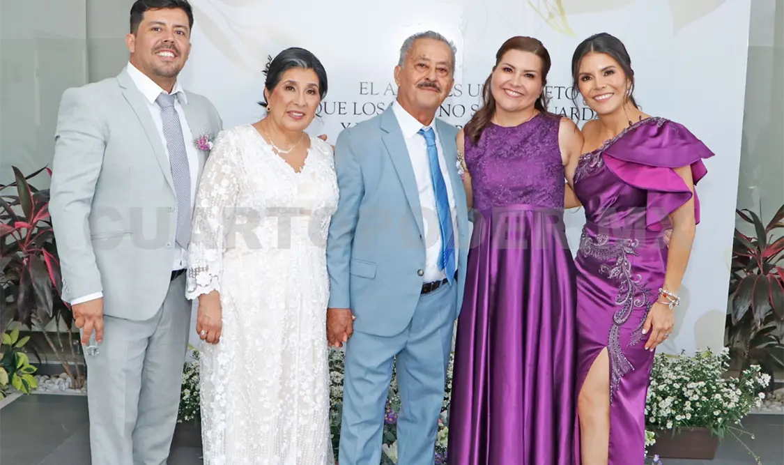 Lupita y Roberto estuvieron acompañados de sus hijos, nietos, hermanos, sobrinos y amigos en el lindo festejo que realizaron con motivo de sus bodas de oro. Todos la pasaron increíble disfrutando la música, el banquete y los aperitivos, además de desear a la feliz pareja que su amor siga creciendo cada día. ¡Felicidades!