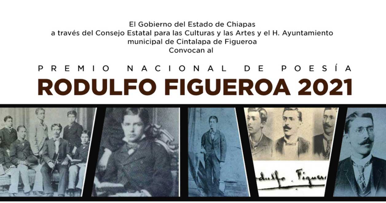 Esta es la última semana que estará abierta la convocatoria del Premio Nacional de Poesía Rodulfo Figueroa 2021, por lo que todos los interesados tienen hasta el 4 de junio para enviar sus propuestas. La invitación está dirigida a las y los poetas mexicanos de nacimiento, además de los escritores de la República de Guatemala, residentes en el país o en el extranjero.