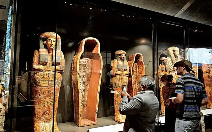 Cabe destacar que la momia de Tutankamón permanece en su tumba en el Alto Egipto, pero su sarcófago de cuarcita roja, que contenía tres ataúdes uno dentro de otro, incluido el más pequeño de oro macizo y 110 kilos de peso, se presenta ahora en el nuevo museo.