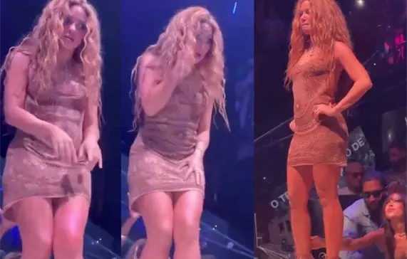 La intérprete colombiana Shakira deslumbró en el club LIV Miami, ubicado en Miami Beach, el pasado fin de semana, donde mientras bailaba sensualmente para sus fanáticos con un ajustado vestido color nude, enfrentó una supuesta situación incómoda, captada por las cámaras presentes.