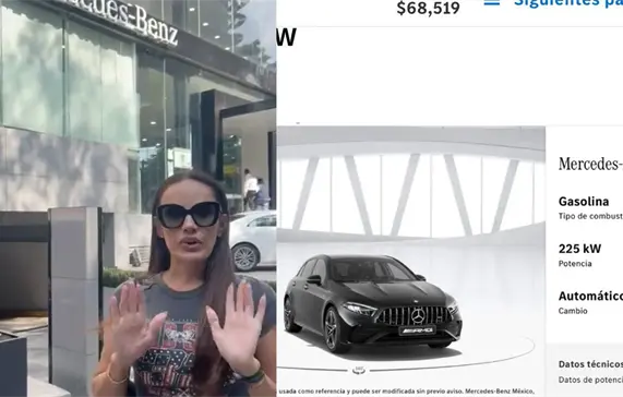 La marca alemana Mercedes-Benz se encontró en controversia por ofrecer un auto de lujo en 68 mil pesos. La oferta fue vista por la actriz Raquel Martínez, quien rápidamente publicó su caso en redes sociales para saber si la marca debía respetar ese precio.